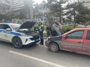 В Севастополе сотрудники ГИБДД оказали помощь девушке-водителю на оживлённой дороге