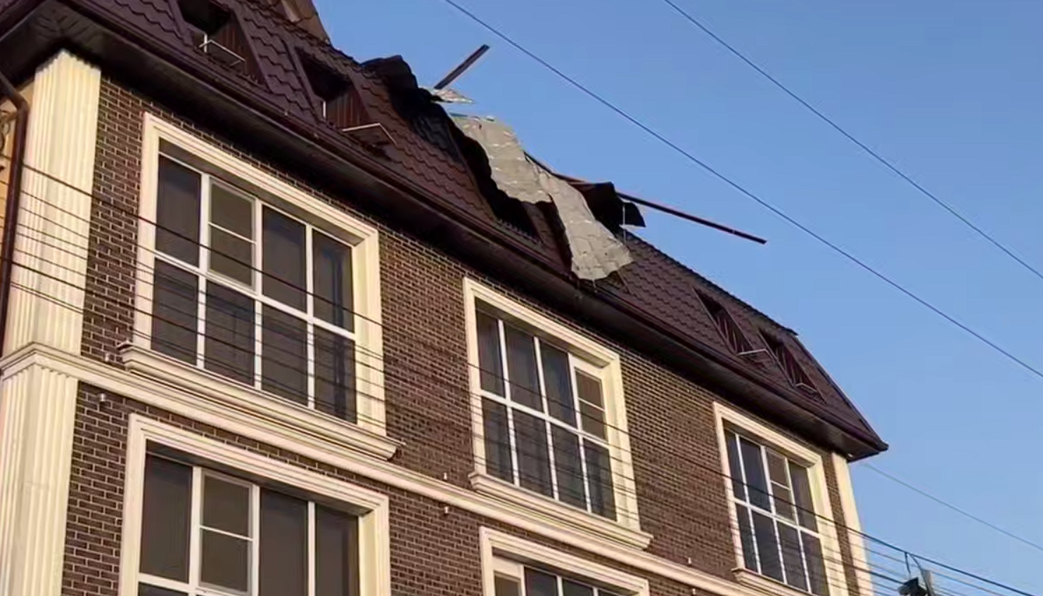 В Прикубанском округе в результате падения фрагментов БПЛА повреждена кровля многоквартирного дома, разрушен балкон и повреждена одна из квартир. Около 10 автомобилей посекло осколками.