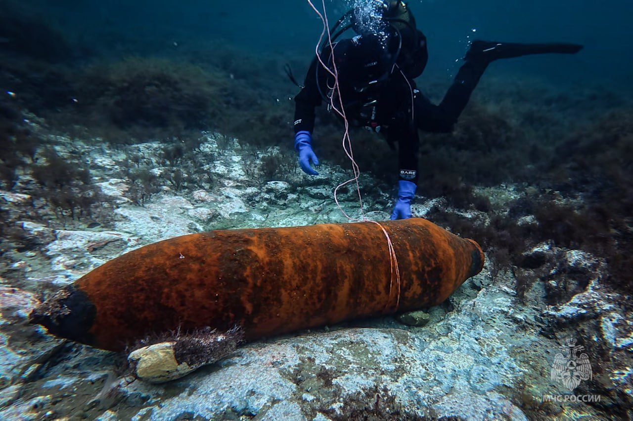 О крупном металлическом предмете на дне в экстренные службы сообщили дайверы. Советская фугасная авиационная бомба времён Великой Отечественной войны находилась в акватории у мыса Херсонес – в 100 метрах от берега, на глубине около 12 метров.