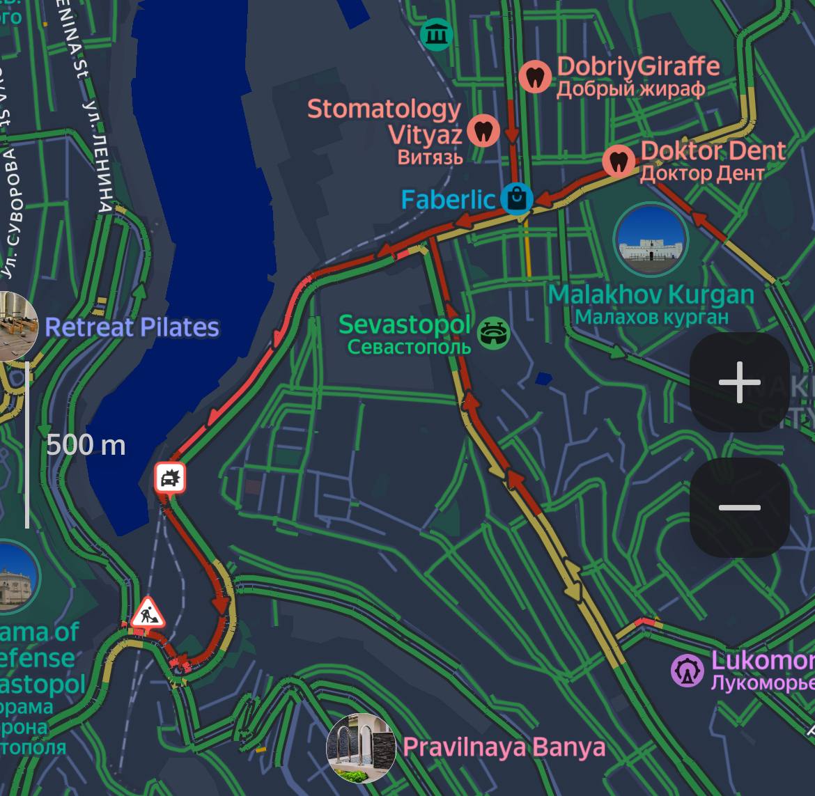 В результате работ, открытой для проезда осталась только одна полоса, ведущая на спуск Котовского. Это вызвало критическую ситуацию для автомобилистов, направляющихся в сторону центра. Движение парализовано на улицах: Малахов Курган, Брестская, Багрия, Истомина, Героев Севастополя. Ожидание в пробке примерно 1,5 — 2 часа.